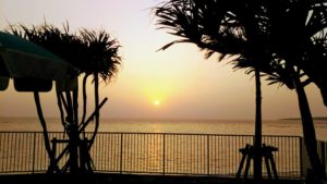 日中の青い海、水平線に沈む夕日、夜の星空を波音と共にお楽しみ頂けます。